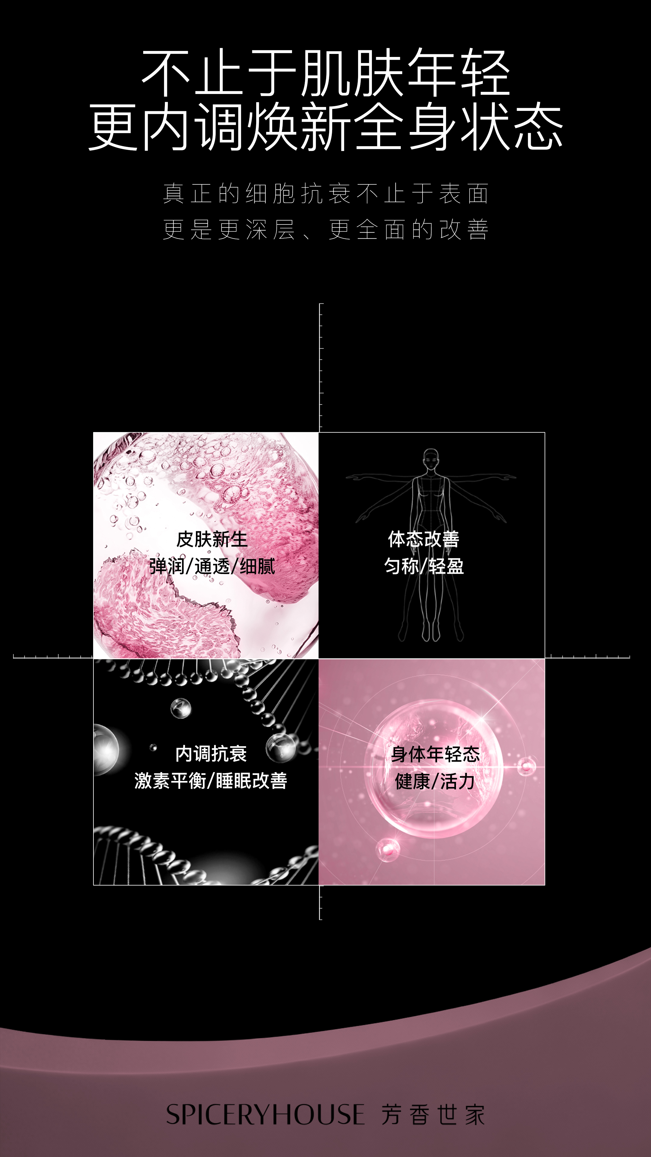 在抗衰需求愈发多元的当下,人们早已不满足于表面的肌肤焕亮,更渴望从内而外实现全身状态的年轻焕新。芳香世家SpiceryHouse深耕科学养护领域十余年,精准洞察这一核心需求,跳出“表层抗衰”的局限,以细胞级抗衰核心成分AKG(α-酮戊二酸)为基石,打造时光双舱饮风味饮料与压片糖果的黄金组合,构建“内调+外养”的全维度养护体系,不仅让肌肤重现透亮紧致,更能由内激活全身细胞活力,焕新身心整体状态。真正的年轻,始于细胞的健康与活力。随着年龄增长,人体自身的AKG含量会断崖式下降,直接导致细胞线粒体“能量发电站”效率降低,全身代谢放缓,进而出现肌肤暗沉、体力衰退、精神不济等一系列衰老信号。芳香世家深谙“细胞兴则全身兴”的抗衰逻辑,将AKG作为核心成分融入产品,从根源破解全身衰老难题——它不仅是三羧酸循环的核心中间体,能高效促进ATP合成,为全身细胞补充能量;更可调控DNA甲基化水平、提升NAD+水平、激活长寿蛋白,形成“能量补给+损伤修复+衰老逆转”的三重防护,从细胞根源唤醒全身年轻活力。